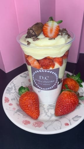 O Copo Premium de Ninho c/Nutella e Morango, contém um creme de brigadeiro de Ninho, Nutella, morangos, brownie e creme de Ninho ( Mousse de Ninho)