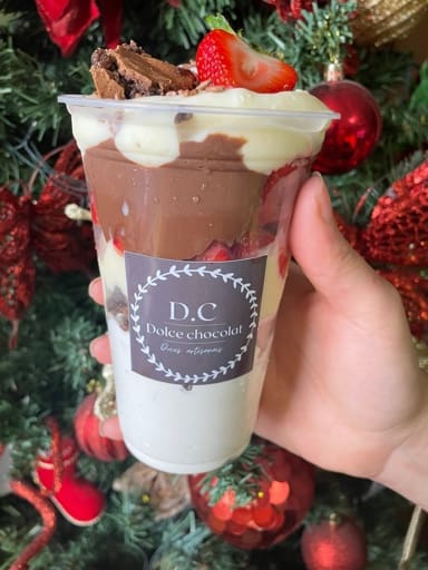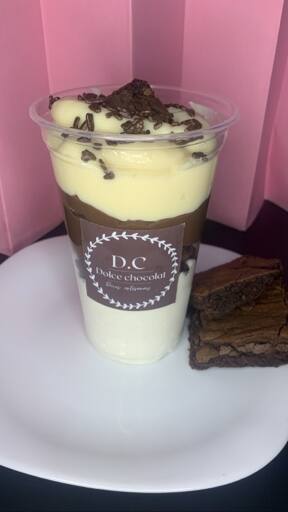 O Copo Premium Brigadeiro c/Ninho, contém um creme de brigadeiro feito